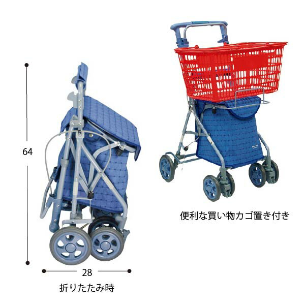 【メーカー直送品】お買い物にばっちり!折りたたみ式シルバーカー リズムRWC 重さ4.4kg バッグ約14L 散歩用 買い物用 高さ調節可能 ミドルタイプ 大容量バック 手元ブレーキ おばあちゃん