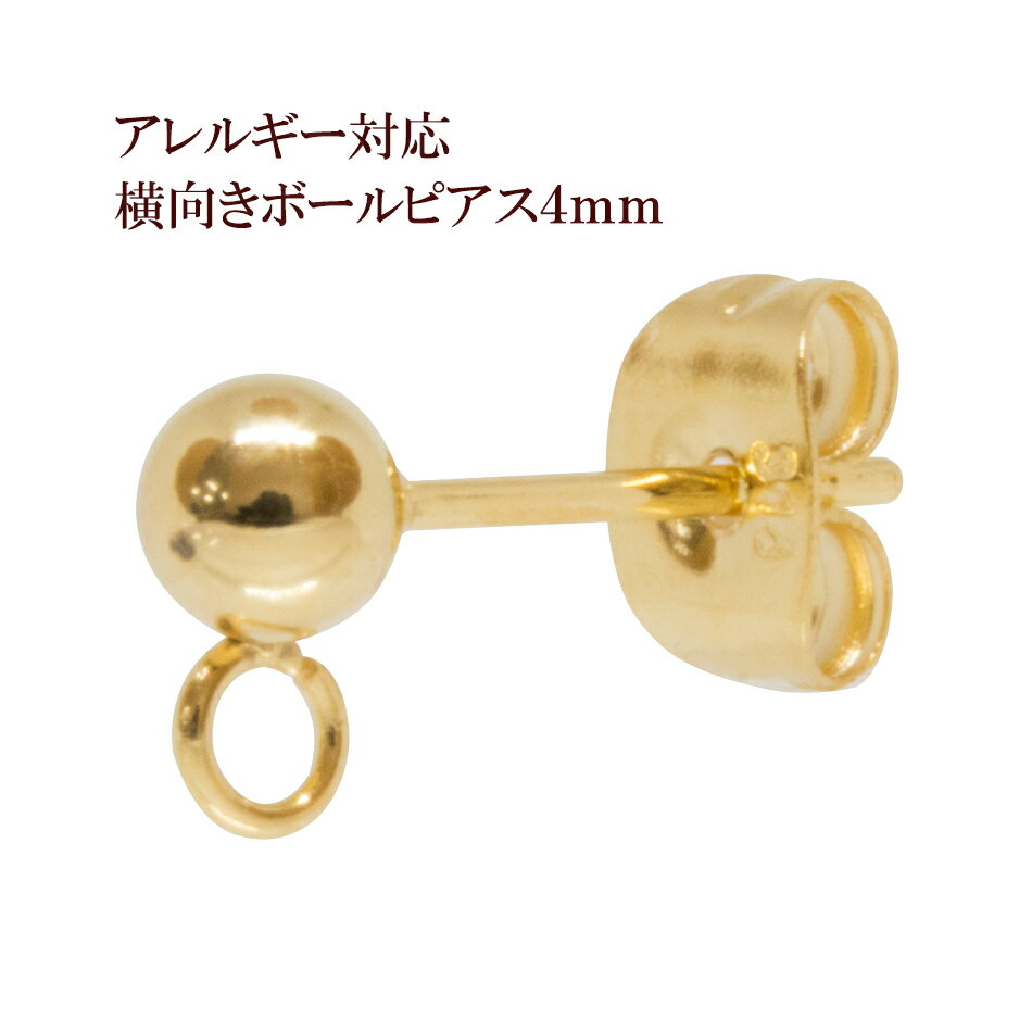 [10個] サージカルステンレス ヨコ向きカン付き ボールピアス 4mm [ ゴールド 金 ] キャッチ付き アクセサリー パーツ 金具 金アレ