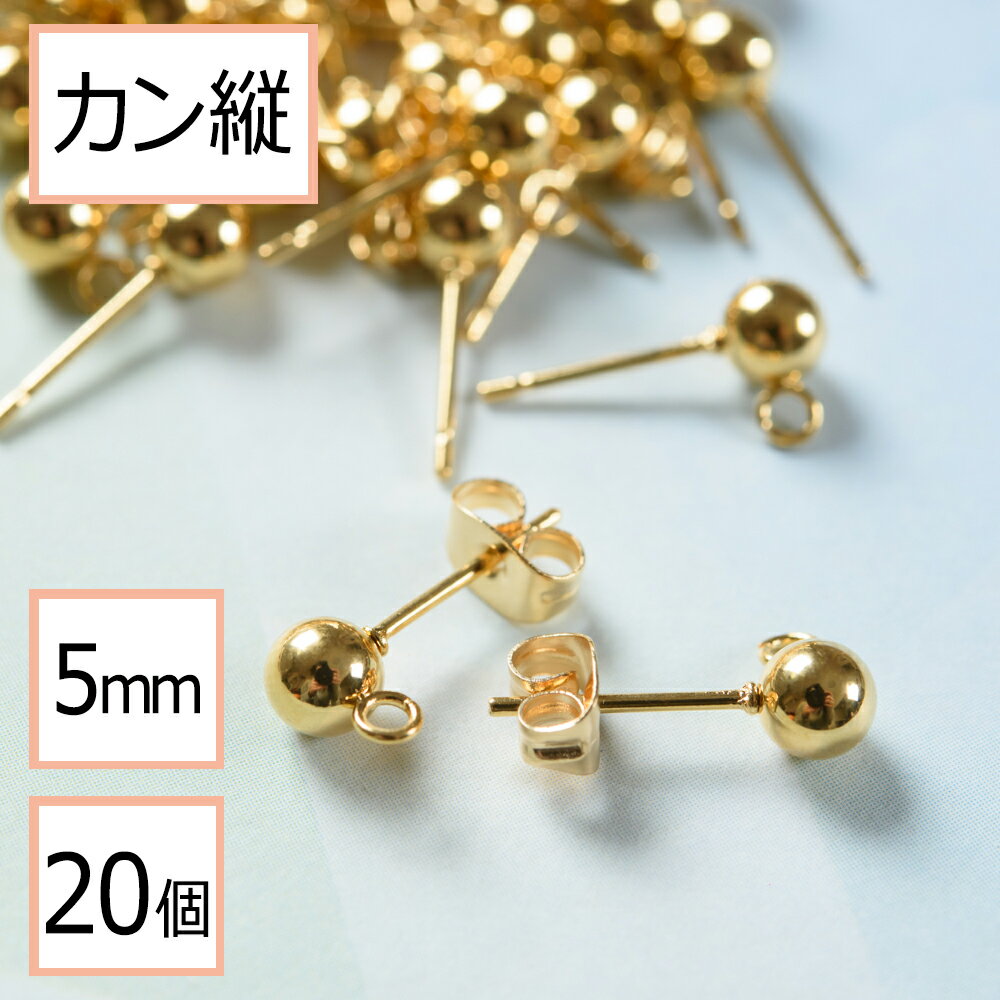 【サージカルステンレス 316L 】カン付き ボール ピアス ゴールド 5mm ×ゴールドキャッチ (カンの向き:縦) 20個 (10ペア) ステンレス パーツ 金属アレルギー対策 アクセサリー パーツ